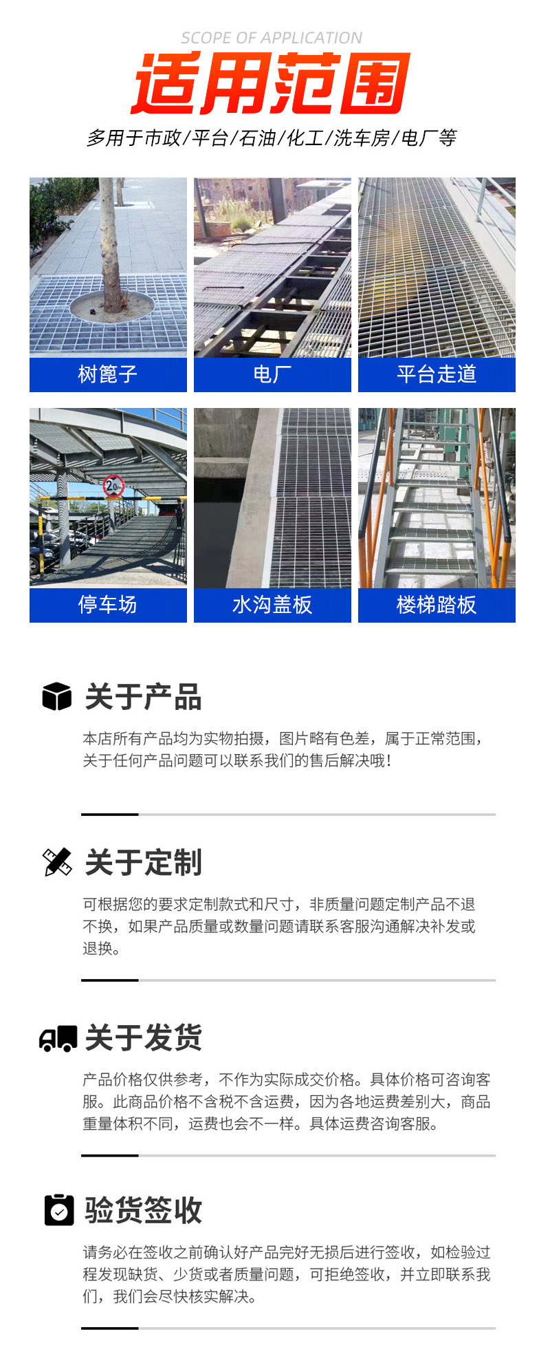 服務(wù):精選優(yōu)加厚扁鋼原材料,我廠多年來專注于鋼格板的研發(fā)、生產(chǎn)、安裝,從生產(chǎn)到銷售,一條龍服務(wù),同等品價格更合理!而且得到我們貼心的服務(wù)。